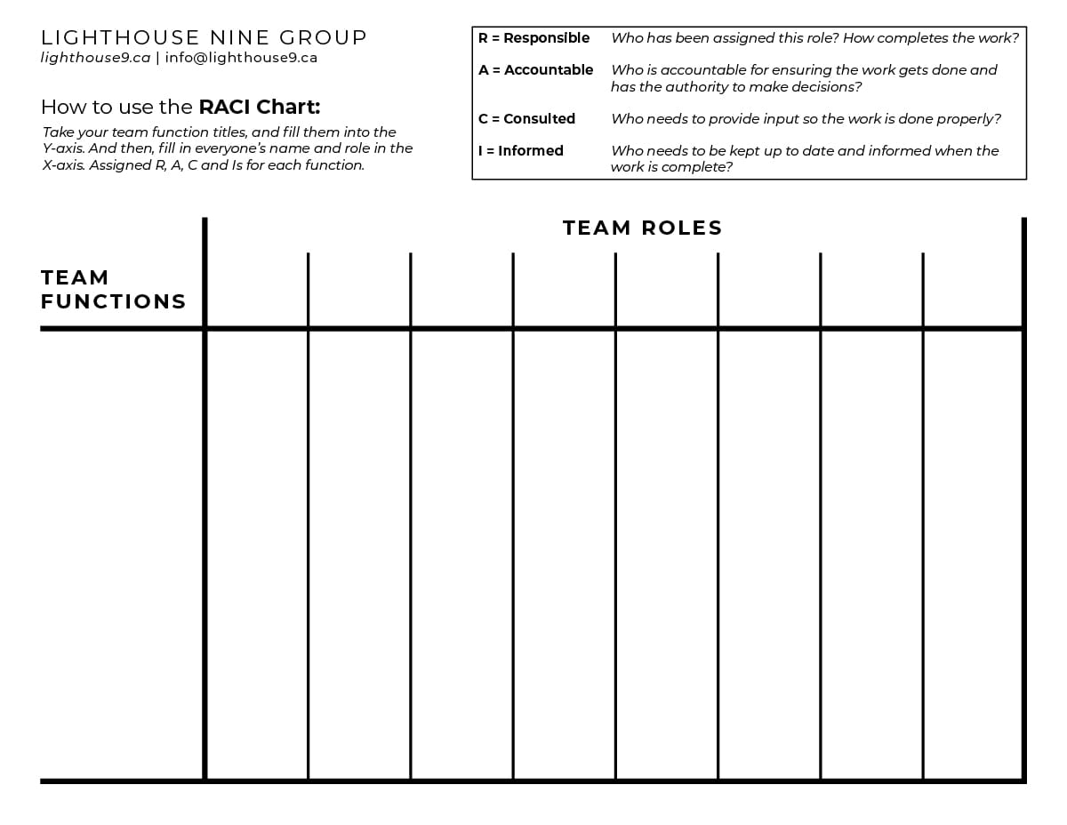 If you go through the exercise successfully, you will have an organized RACI chart you can use to update roles and job descriptions.
